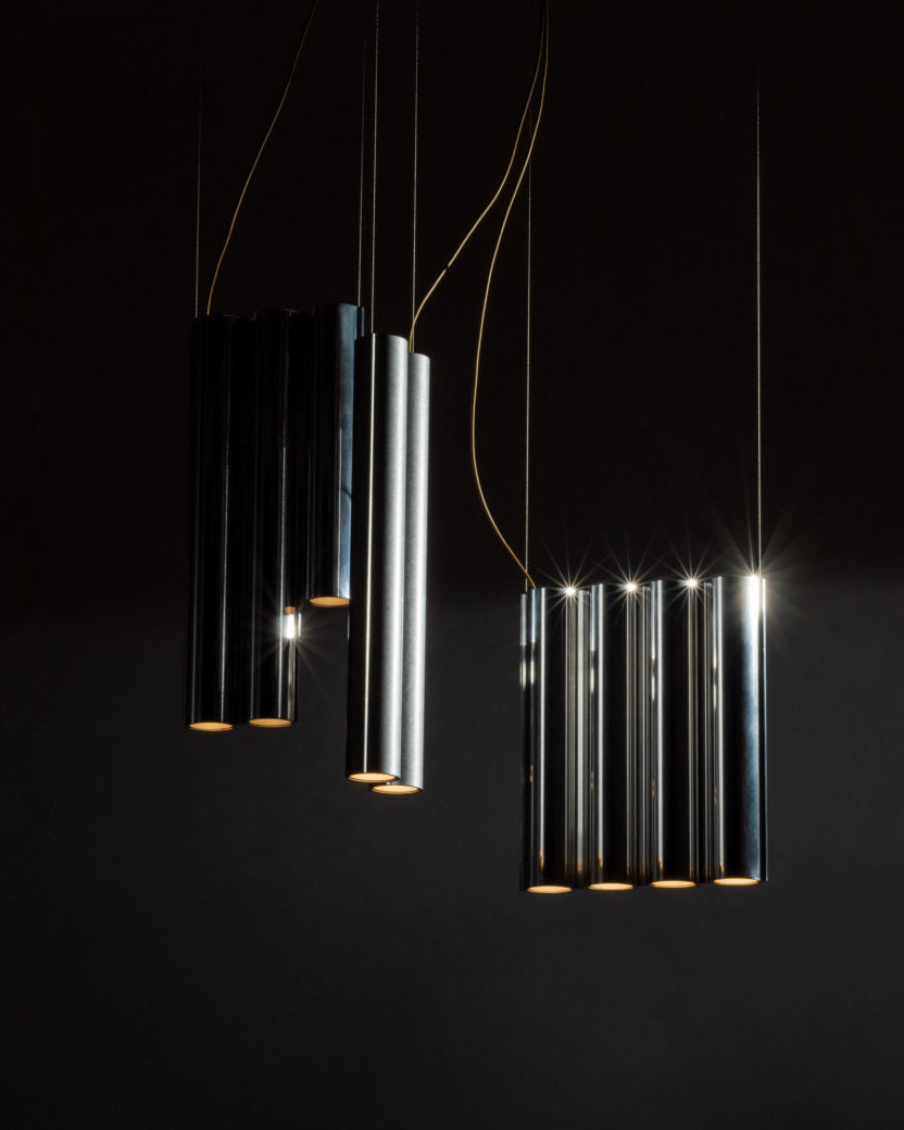 Suspendus dans l'architecture, les plafonniers dessinent des lignes lumineuses – constellations, volumes ou gestes. Sculpturaux ou discrets, ils façonnent l'espace, jouant avec la hauteur, les matériaux et le vide. Dans les halls d'entrée, les escaliers, les salles à manger, les cuisines ou les recoins, chaque luminaire véhicule une intention raffinée et percutante.